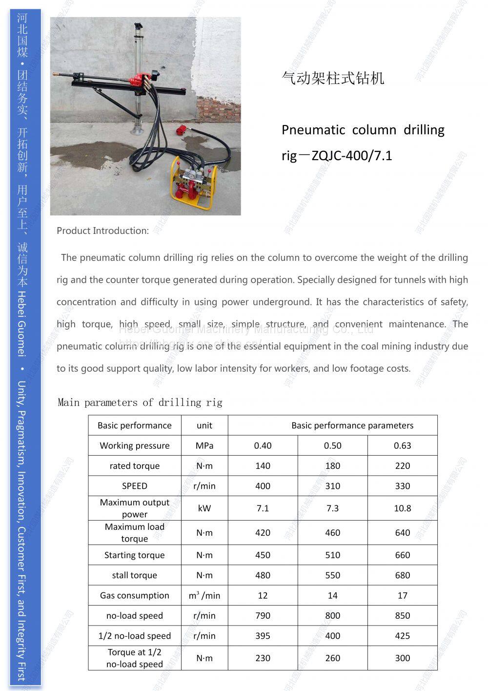 ZQJC-400/7.1 Pneumatic Pillar Drilling Machine Pneumatic Drilling Machine Pneumatic Pillar Drilling Machine Support Packagee