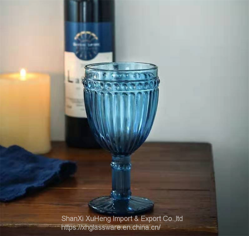 Home > Products > Wine Glass and Water Drinking Glass > Navy Blue Colored Vintage Embossed Flute Wine Goblet Water Glassware And Ice Cream Glass Cup