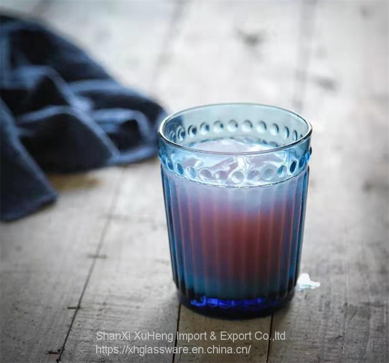 Wholesale Solid Color Vintage Embossed Court Style Dof Glass Tumbler