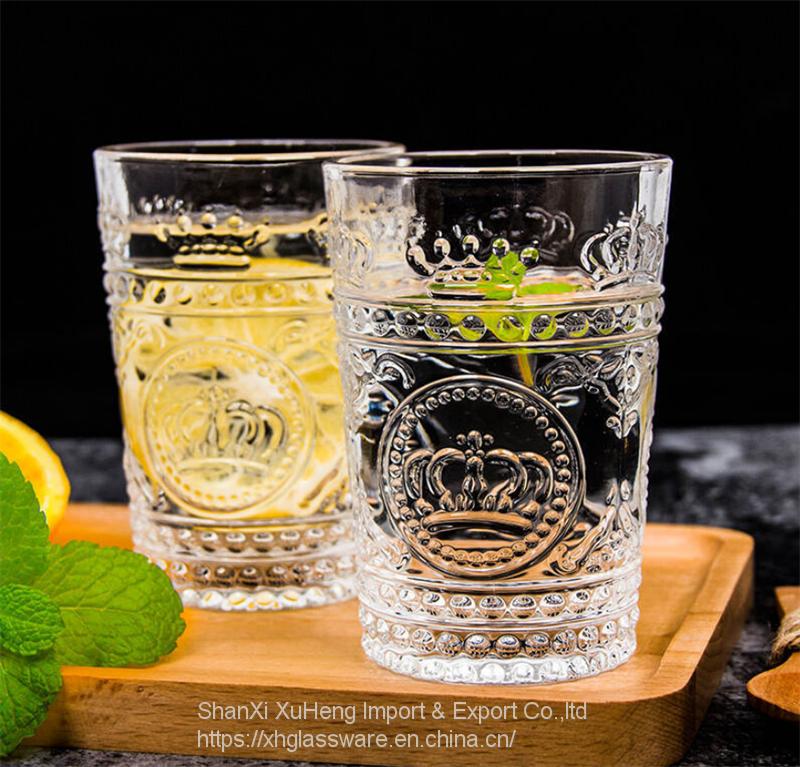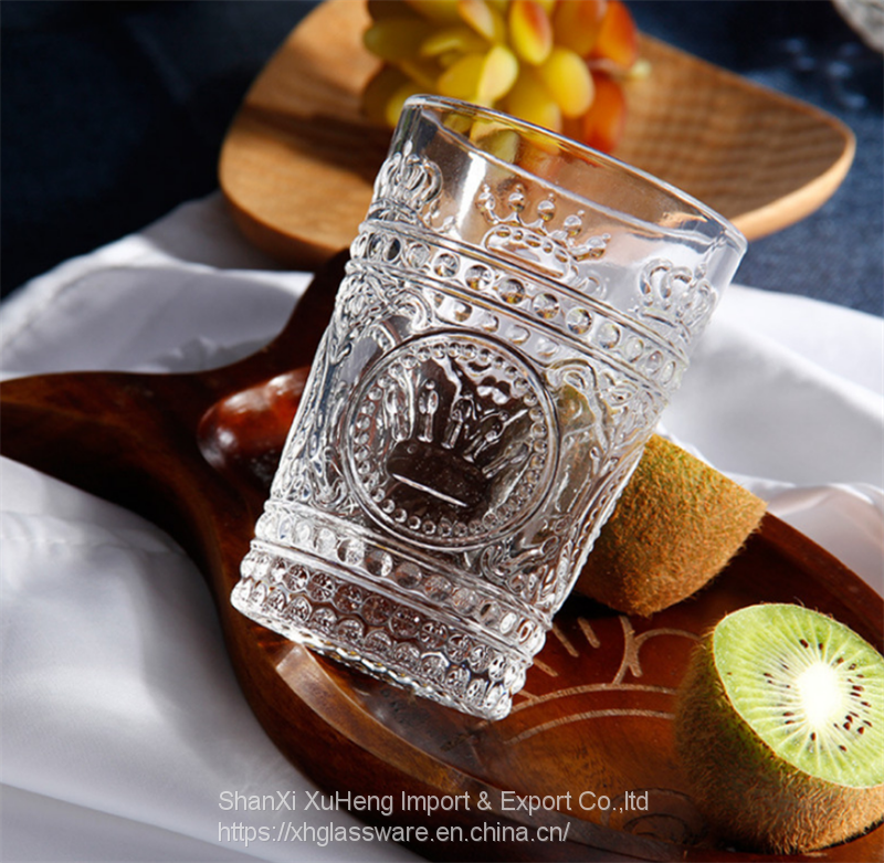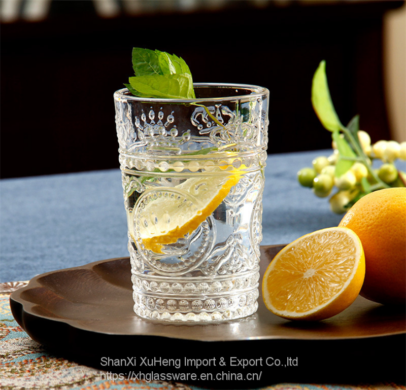 Wholesale Solid Color Vintage Embossed Court Style Dof Glass Tumbler
