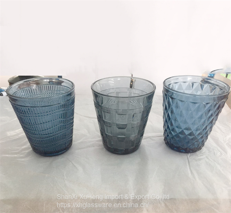 Wholesale Solid Color Vintage Embossed Court Style Dof Glass Tumbler
