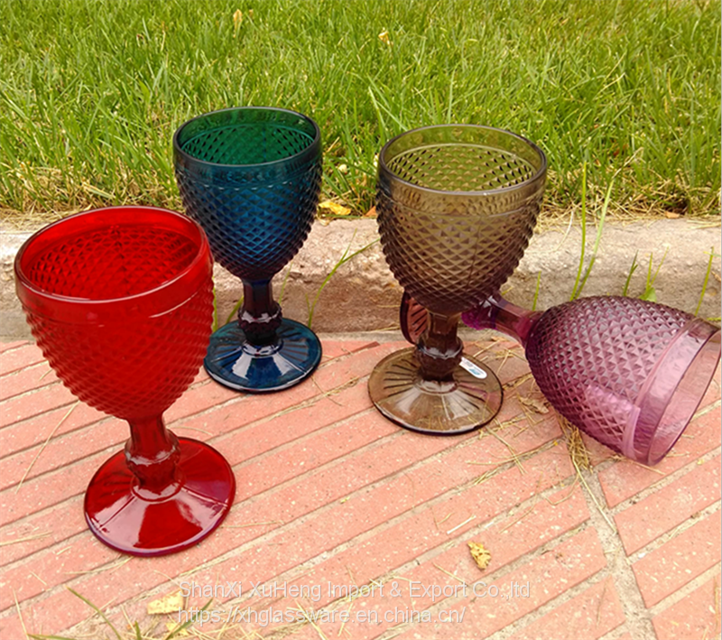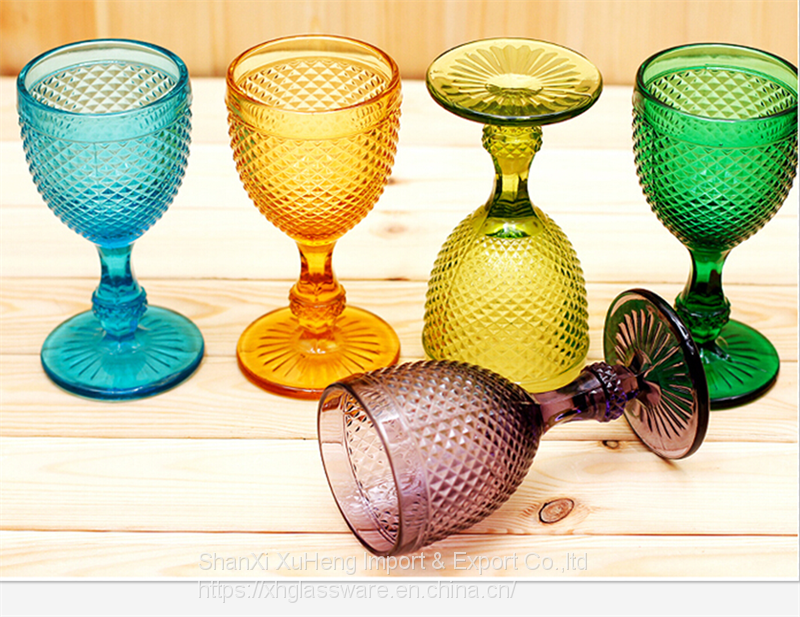 Home > Products > Wine Glass and Water Drinking Glass > Wine Glass Colored Glass Goblet Vintage Pineapple Pattern Embossed Glass Goblets