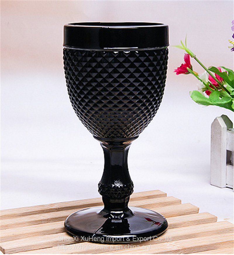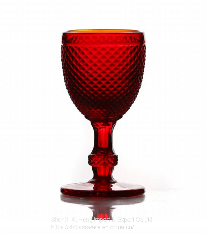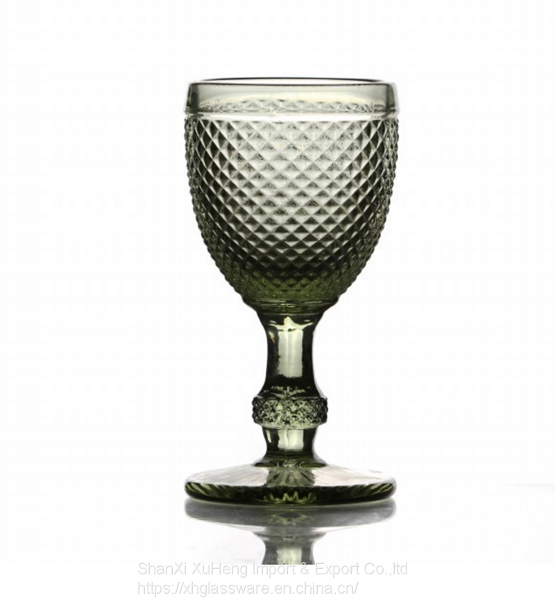 Wholesale Wedding Embossed Glass Cup Red Wine Glass Juice Beverage Glass Goblet