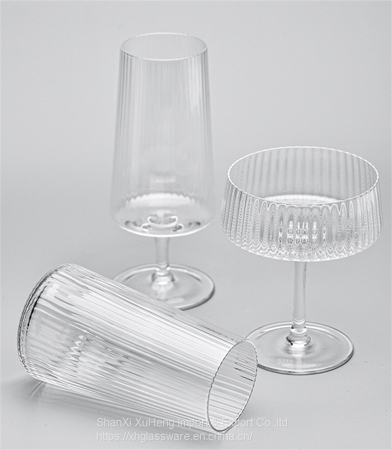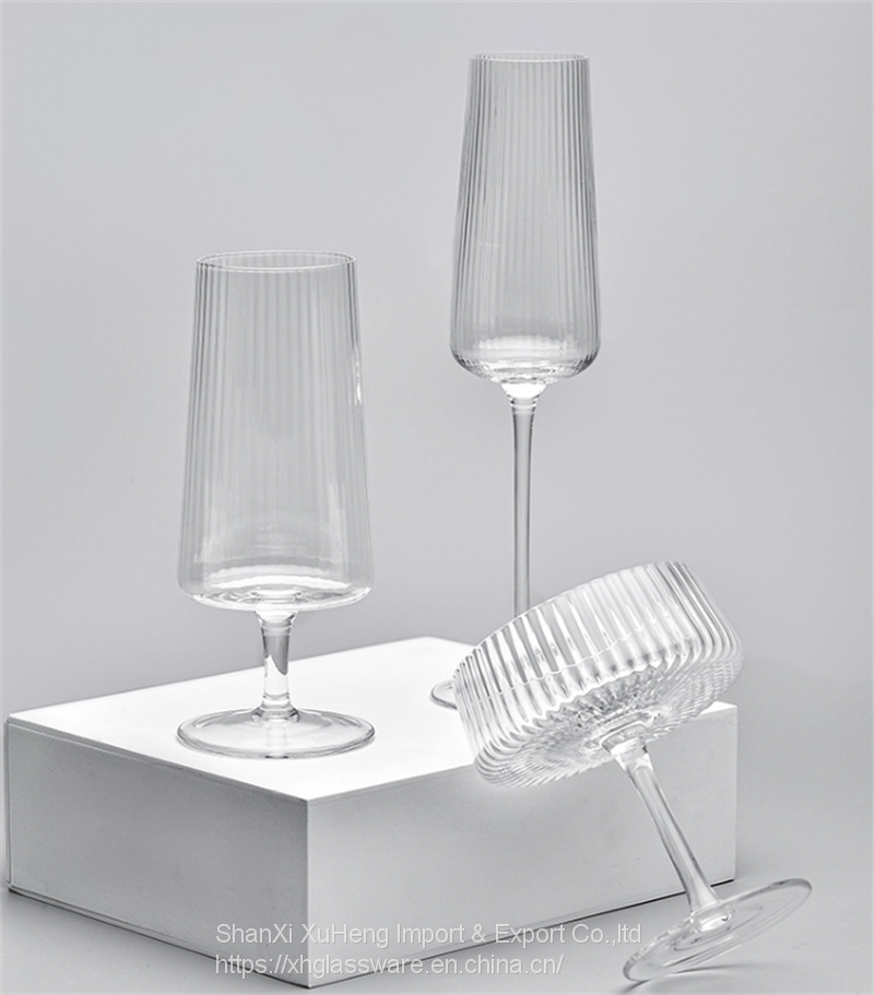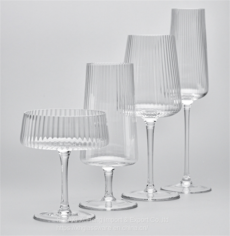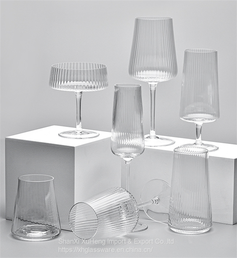 Wholesale Creative Fashion New Design Vertical Stripes Wine Glasses Water Goblet Glass Set Clear Ribbed Champagne Flutes