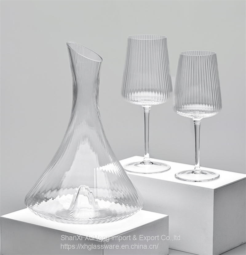 Home > Products > Wine Glass and Water Drinking Glass > Luxury Popular Transparent Clear Vertical Ribbed Wine Glass Decanter For Wedding