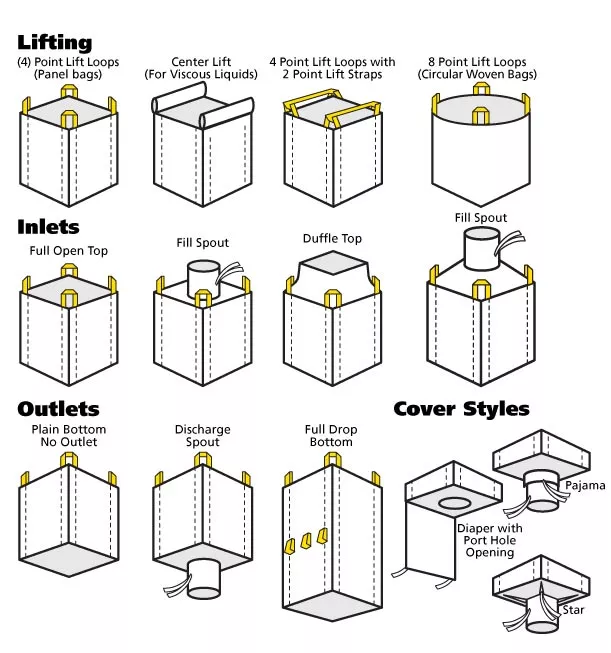 FIBC bulk bag, short for Flexible Intermediate Bulk Containers, are made of Polypropylene woven fabric with lifting loops that allow the bulk container to be filled from top and discharged from the bottom. They are easy to handle with efficiency and also less cost.