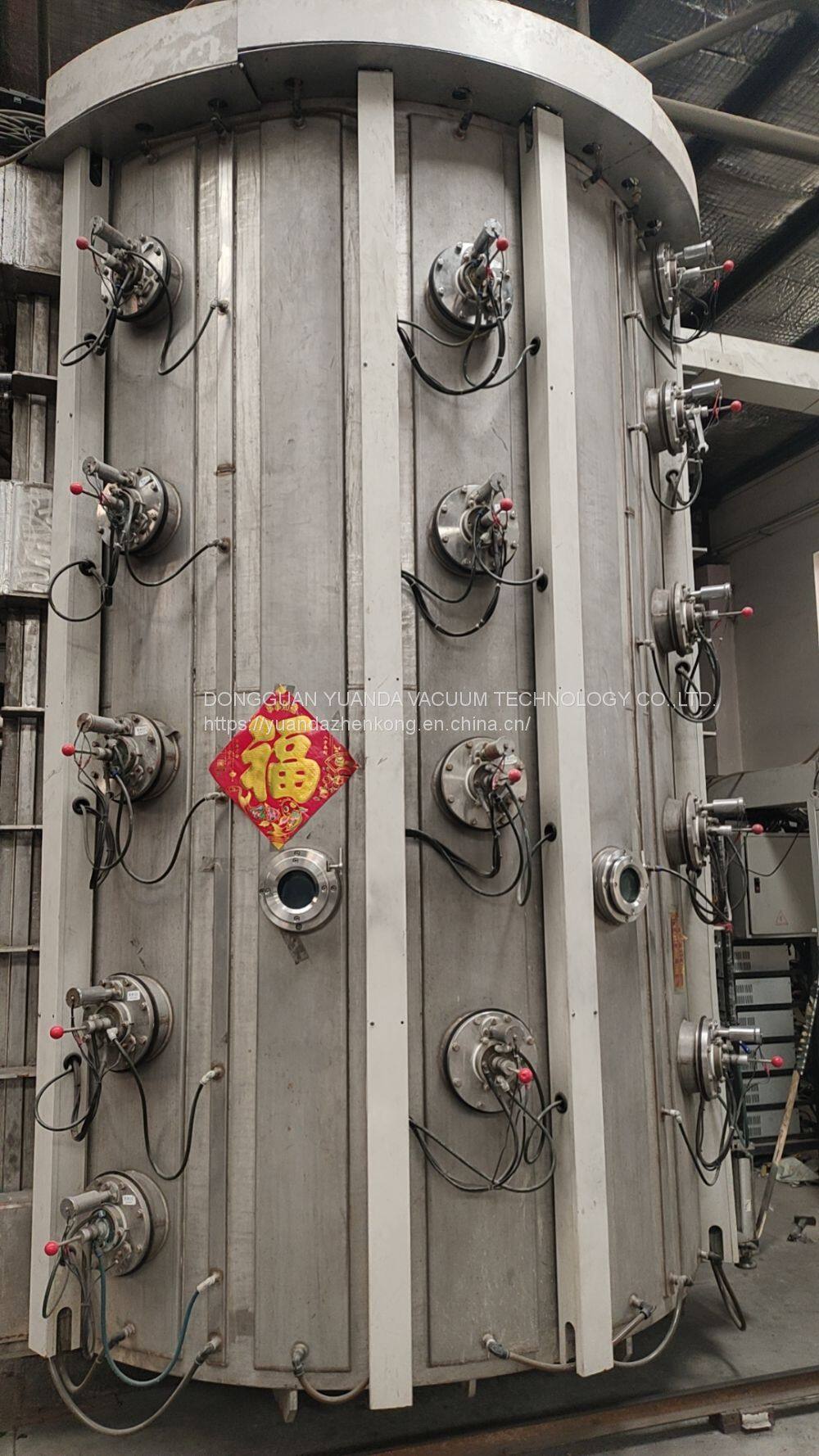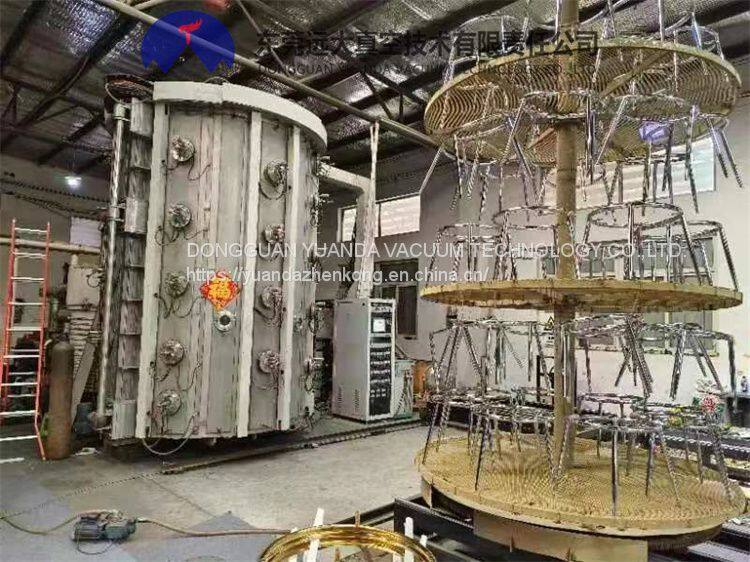This multi arc ion coating machine was produced in 2020, with an inner diameter of 2300 millimeters and an inner height of 3600 millimeters. It is equipped with 32 arc sources, two KT-800 diffusion pumps, two ZJP-1200 Roots pumps, six 2X-70 rotary vane pumps, two carts, a lift, and a 60 kW bias power supply. The equipment can be coated with stainless steel furniture such as coffee tables, tables, chairs, and sinks
