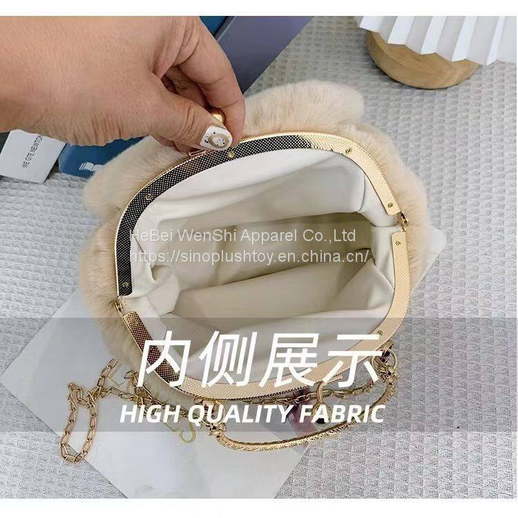 Home > Products > Fur plush series > 010Plush Rabbit Bag Female Oblique Crossbody Korean Version Lovely Chain Women Handbag Fur Plush Shoulder Bag Rabbit Ear Clip Mouth Bag