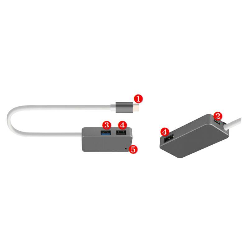 5 in 1 TYPE-C USB3.1 hub, aluminum alloy shell + cable USB 3.0 C male + terminal _ net wire length: 15CM_ wire diameter OD: 4.2 _ black wire _ black gray Pantone: 10392 C aluminum shell, aluminum alloy shell, quickly export heat, more efficient heat dissipation, more stable transmission, exquisite and small appearance, storage does not occupy space, easy to carry. Support PD3.0 fast charging protocol, all USB interfaces use U disk, mobile hard disk, wireless mouse and other related USB storage devices to transfer data with computers and mobile phones。