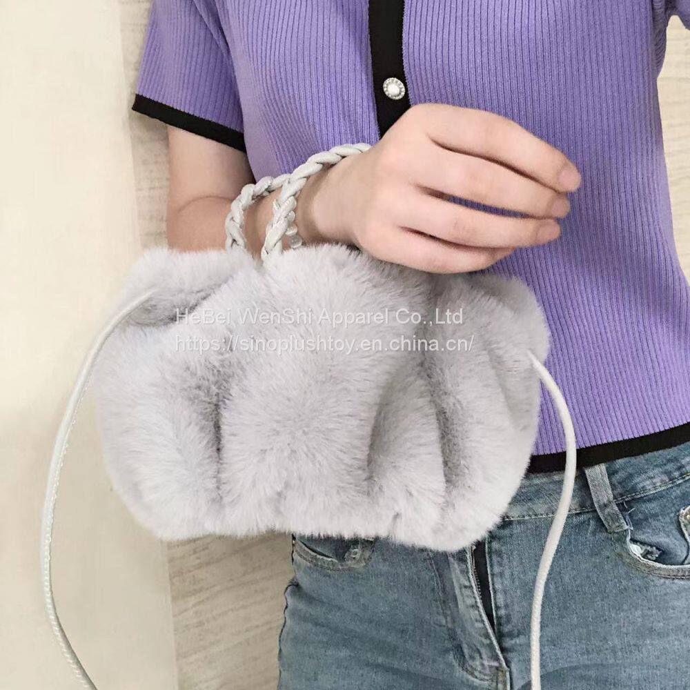 007Fall Plush Hand Bags Furry Faux Fur Purses And Handbags Bucket For Women Shoulder Tote Bags