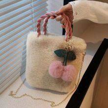 009 Autumn New Lovely Cherry Girl Plush Handbag Female Plush Autumn/Winter Shoulder Crossbody Bag Fashion Small Bag