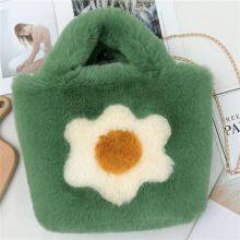 008Custom Designer Handbag Women's Winter Plush Faux Fur Tote Bag Shoulder Women's Tote Bag Women's Tote Bag Women's Sunflower Pattern Bag