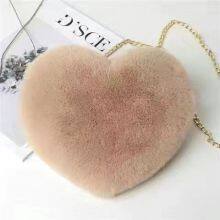 012New Fall Winter Plush Heart Shape Bag Faux Fur Children\'s Change Slant Straddle Bag Women\'s Shoulder Bag