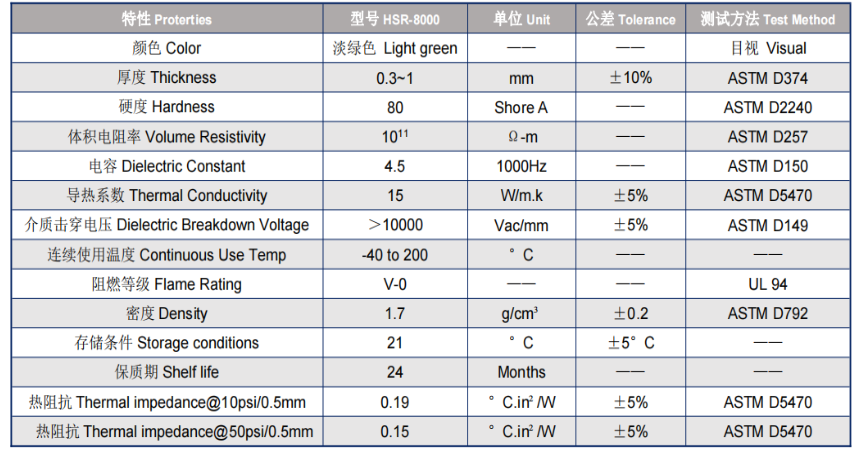 HSR-8000 is a boron nitride-filled silicone elastomer with high thermal conductivity pad, low density,