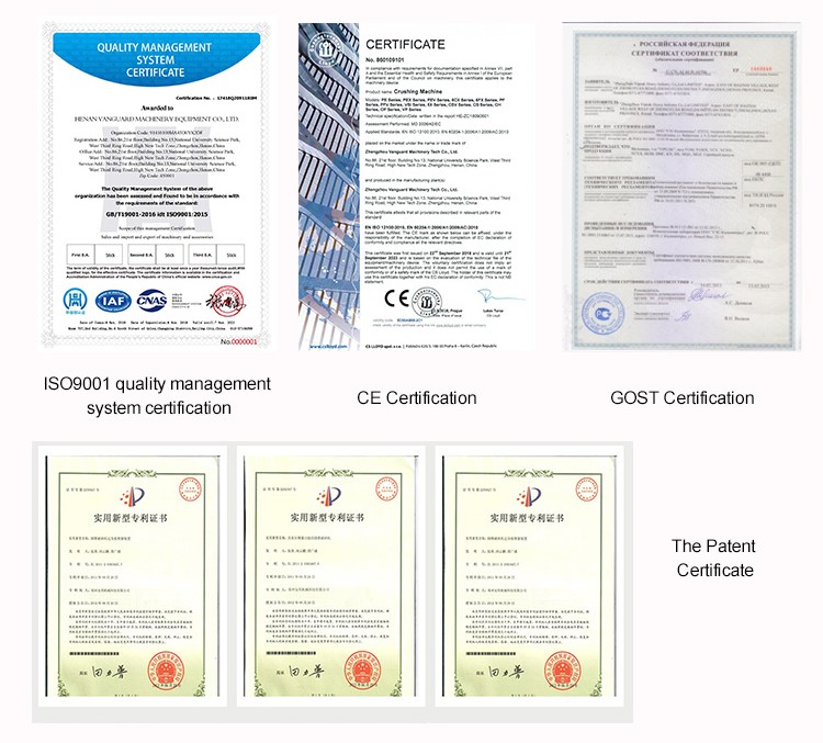 | Certification | ISO9001-2008 international quality management system certification and European CE certification | Application | Ore | |