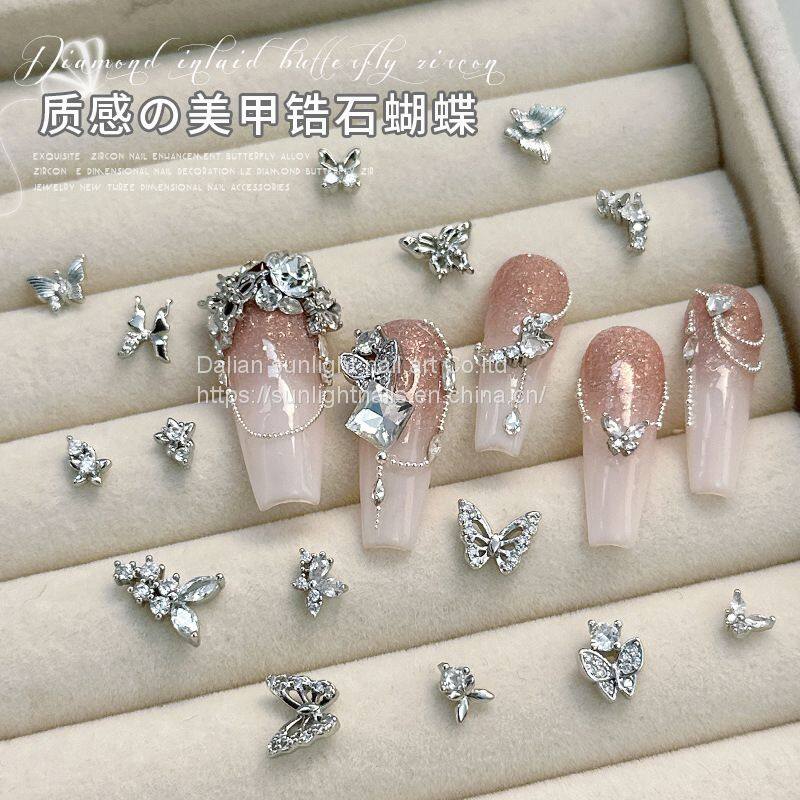 New Half Edge Cat's Eye Stone Butterfly Water Diamond Metal Symmetric Splice Butterfly Alloy Bow Knot Jewelry Nail EnhancementNegotiableMOQ: 10 Bags