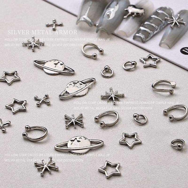 10 New Nail Alloy Accessories Punk Style Empress Dowager West Earth Planet Cross Star Metal Nail Diamond Accessories