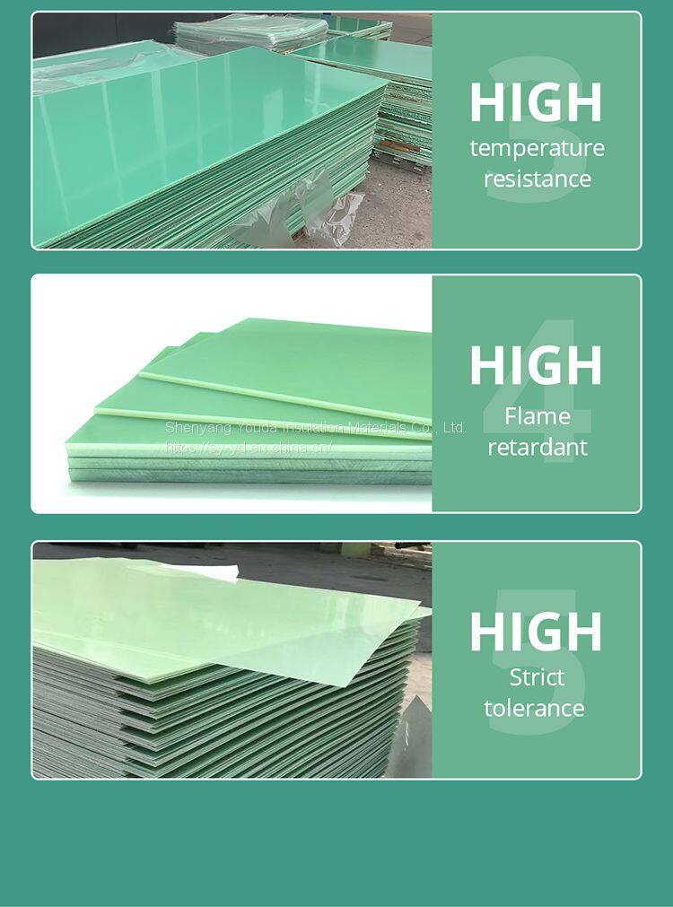 High quality insulation FR4 /G10 green epoxy fiberglass cloth laminate board is made of glass fiber cloth bonded with epoxy resin by heating and pressing. It has high mechanical properties at medium temperature and stable electrical properties at high temperature. Suitable for mechanical, electrical and electronic insulation structure parts, such as insulation FR4 /G10 gasket and other products.