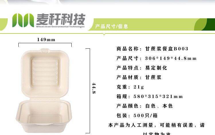 | Product Name | biodegradable bagasse 6 inch square Clamshell Hamburg |