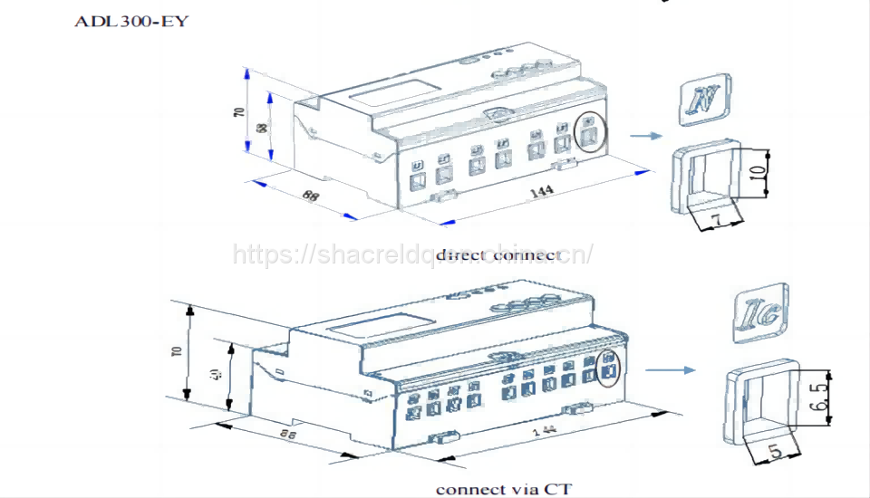 Consumption | Connect Directly: 0.04A, Connect via CT: 0.002A | ||