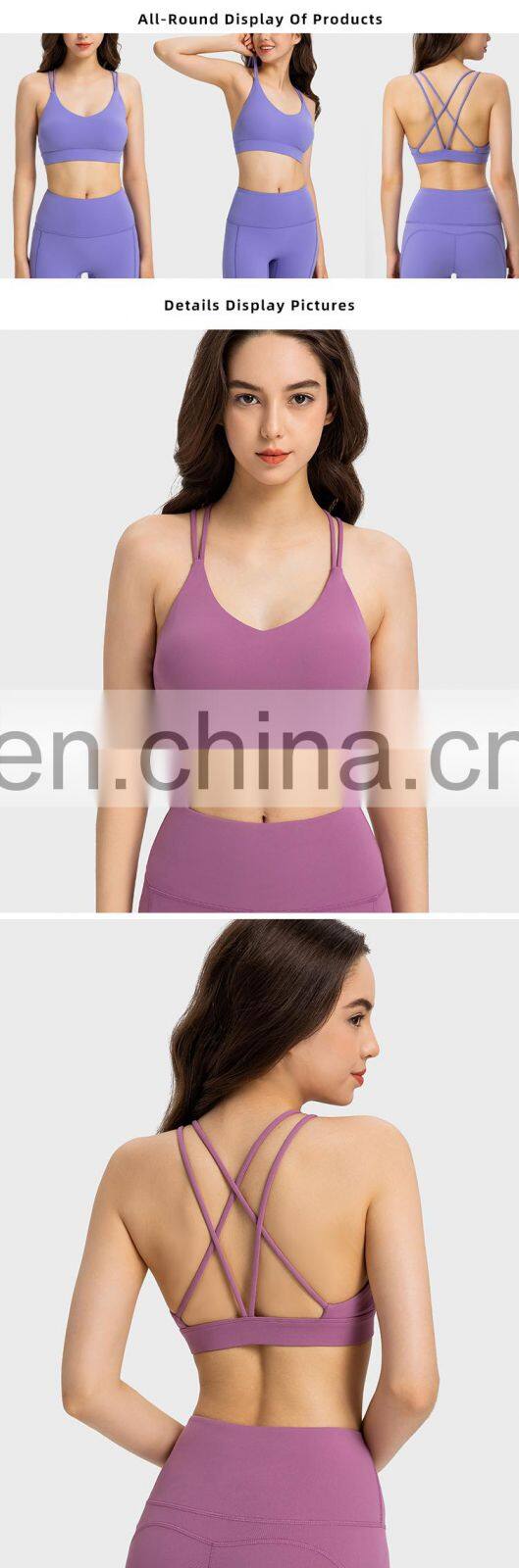 Low Moq Cross Backless Crop Sports Bras Women Gym Yoga Breathable Sling Straps Tops Nylon Spandex