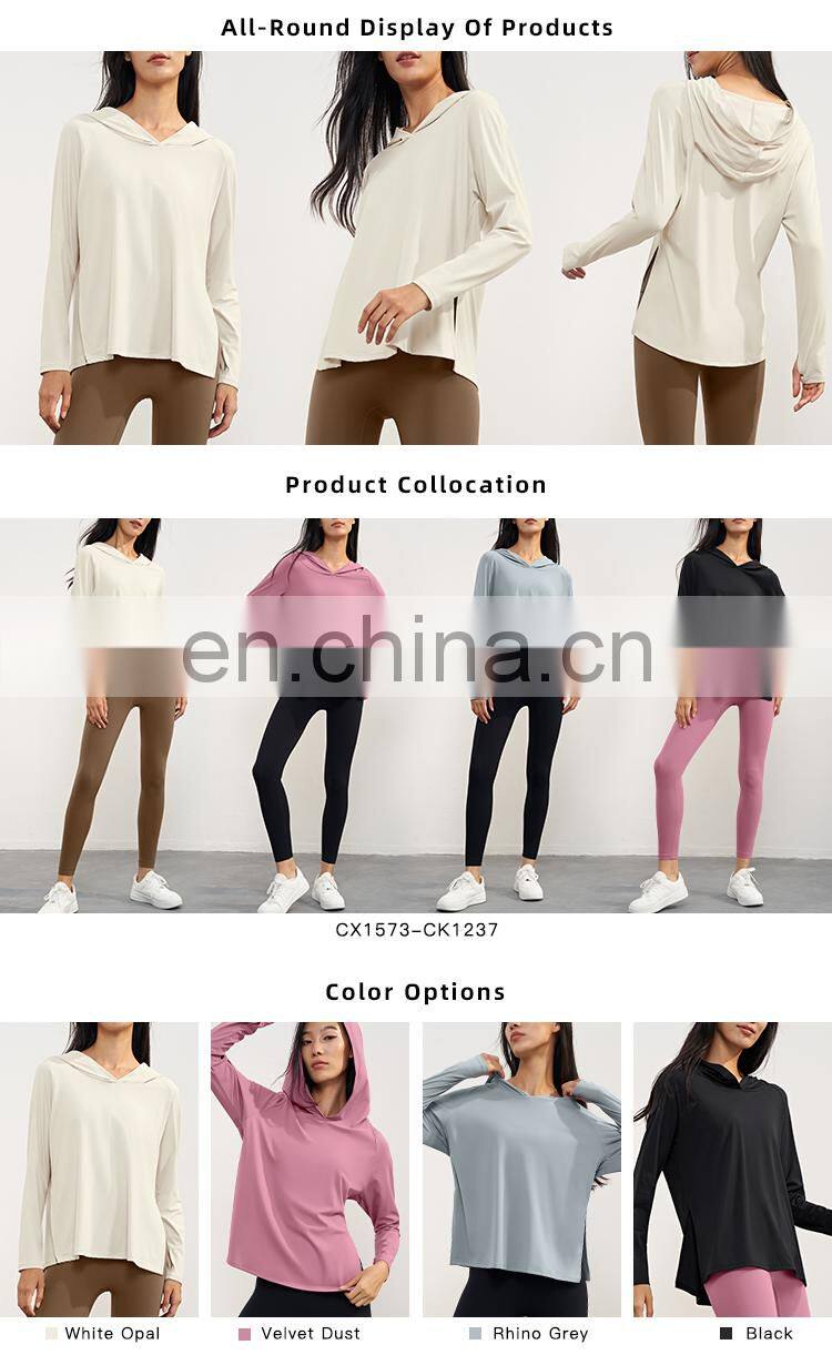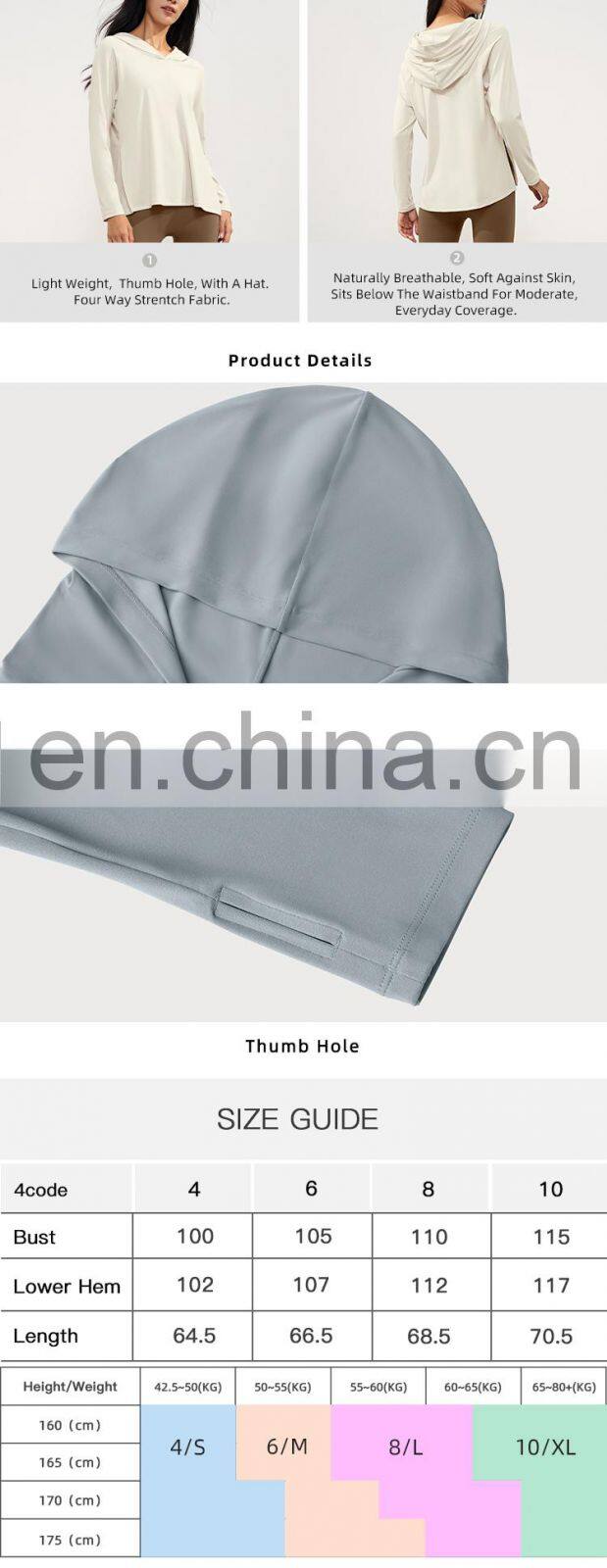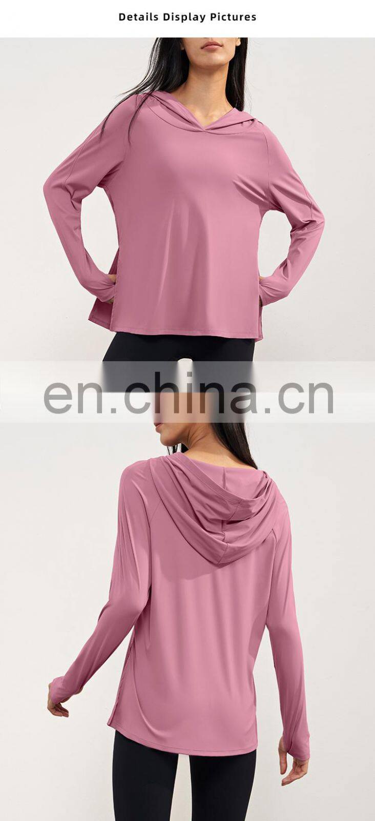Long Sleeve Hoodie T Shirts Women's Sportswear With Thumb Holes OEM Yoga Fitness Sports Plain Tops