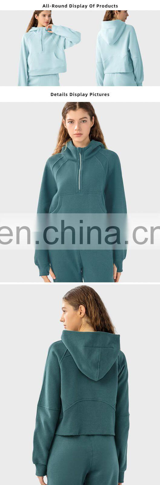 Fleece Quarter Zip New Arrival Outdoors Pullovers Winter Pockets Women Oversized Hoodies 65cotton 35polyester