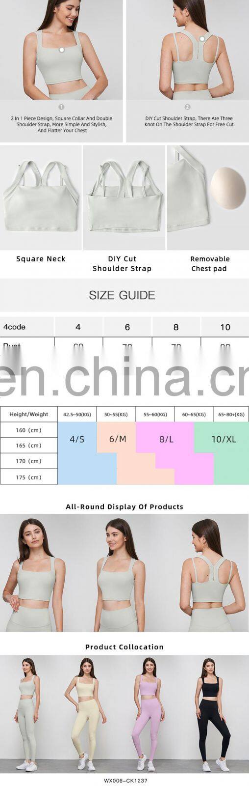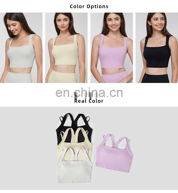 Square Neck Backless Crop Sports Bras For Women Custom Logo Yoga Workout Tank Tops 80Nylon 20Spandex