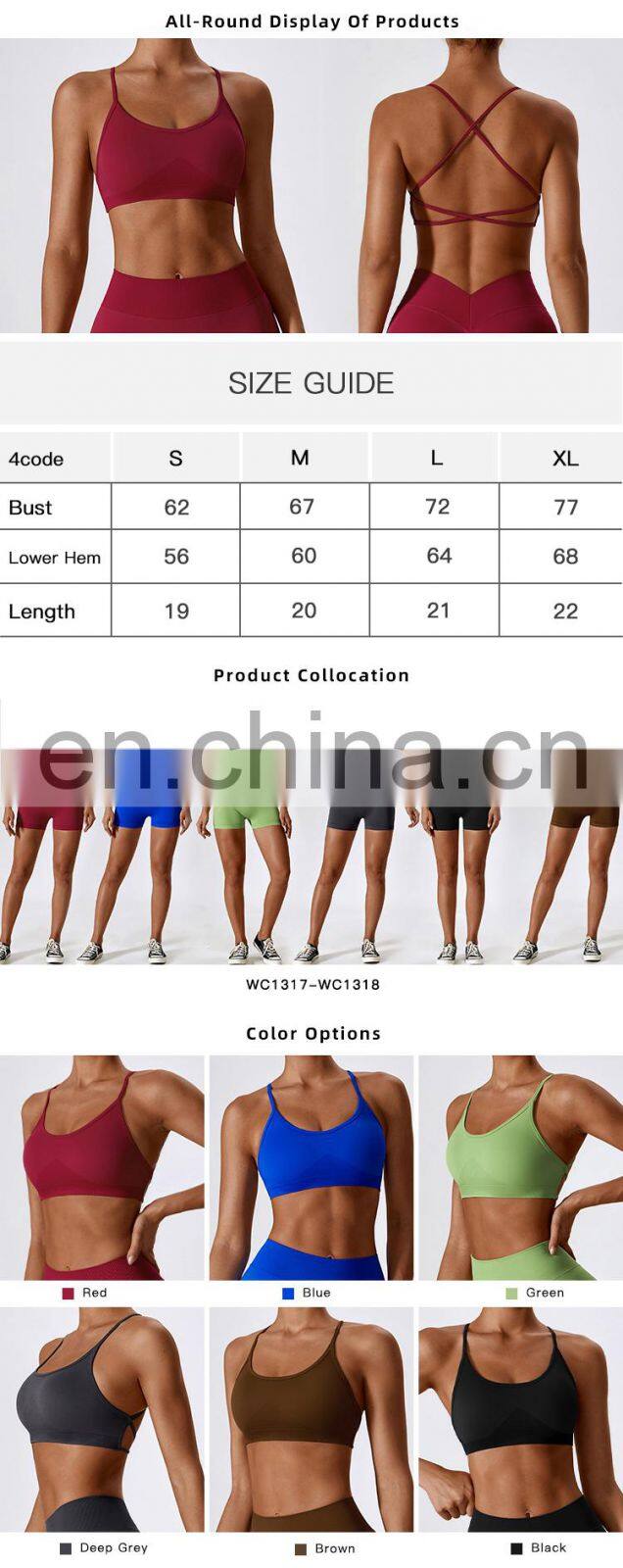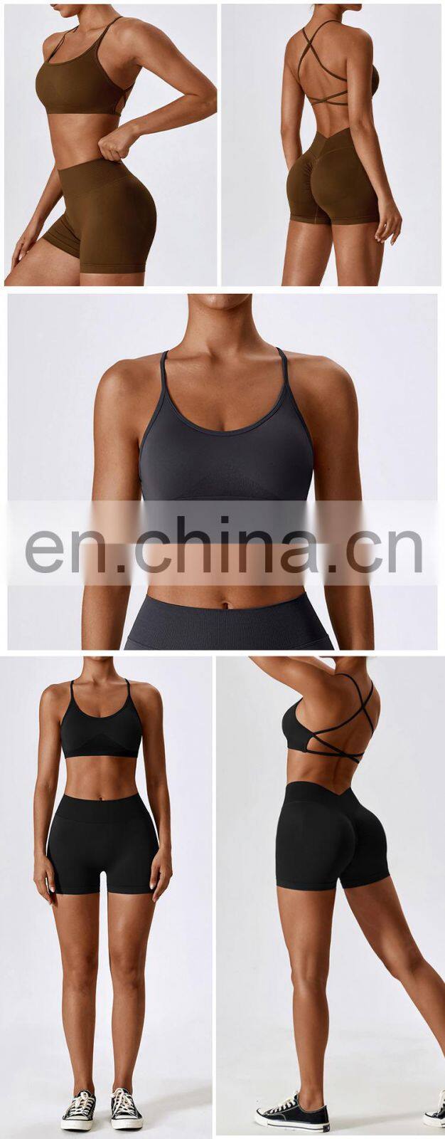 Seamless Double Shoulder Straps Yoga Tops Factory Sale Sexy Backless Fitness Sports BrasNegotiableMOQ: 500 Pieces