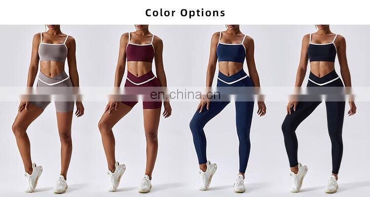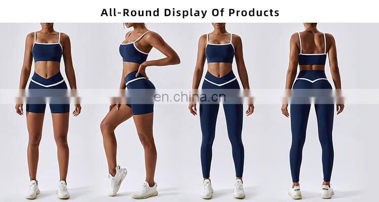 Product Name  | 3 Pcs Fitness Color Contrasting Sports Bra Sets Custom Gym Leggings Cross Waist Sports Shorts  | ||||||