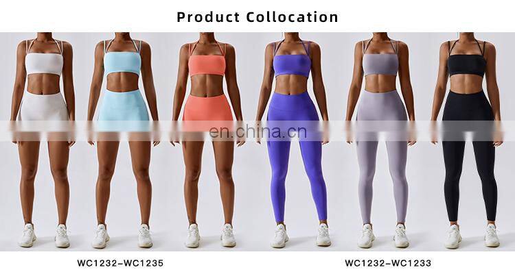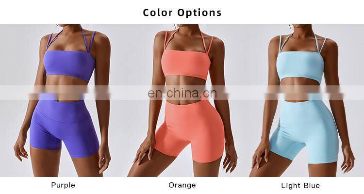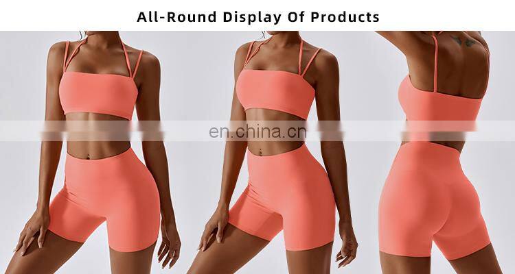 2 In 1 Pcs Women Yoga Mesh Shorts Gym Sets Custom Logo Ribbed Adjustable Sports Fitness Bras