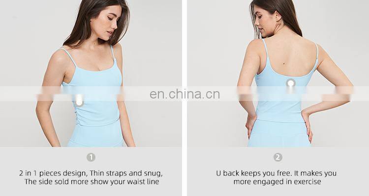 Home > Products > Butter Soft Yoga Wear > 2 In 1 Piece Side Folding Custom Gym Sports Tops Thin Shoulder Straps Breathable Yoga Bras