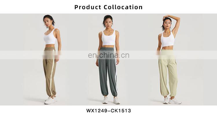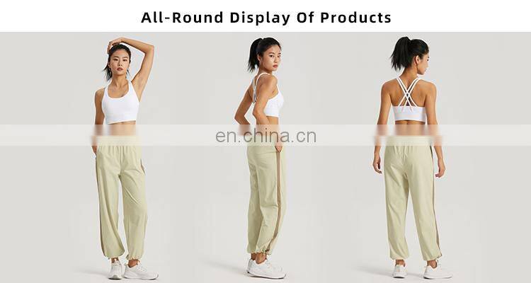 Women Cross Back Sport Bra Gym Top Set Custom Loose Adjustable Jogging Pants For Fitness