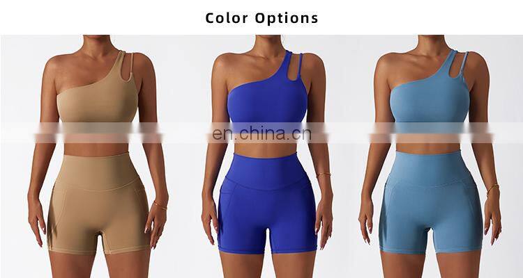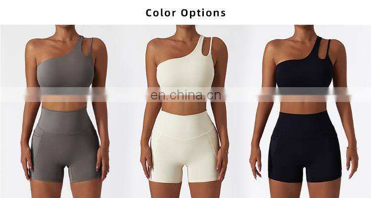 One Shoulder Sexy Workout Sports Bras Wholesale Recyclable High Impact Yoga Crop Tops