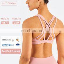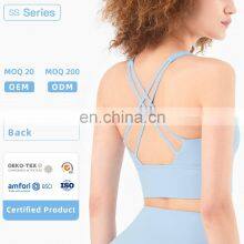 Custom Sexy Strappy Sports Bra High Support Padded Yoga Bra Tops With Removable Cups