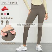 Anti-Rolling Yoga Four Way Stretch Leggings Women Wholesale Gym Butt Lift Fitness Pants 80nylon 20spandex