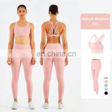 Private Label Women Workout Sets Cross Back Sports Bra Leggings With Pocket 2 Piece Sexy Yoga Set