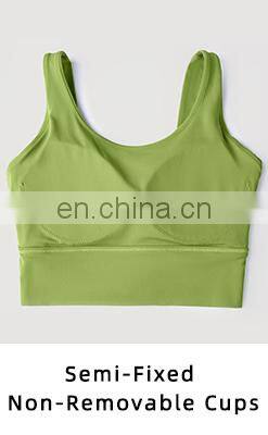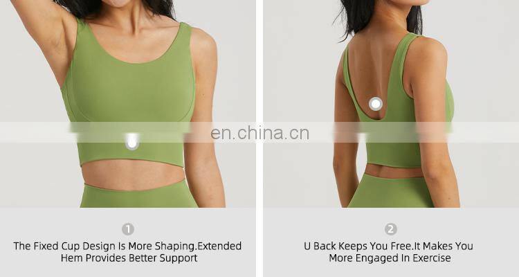 Home > Products > High-end Lycra Series > Open U Back Soft Sports Gym Bras Wholesale Wide Straps Yoga Breathable Crop Tops