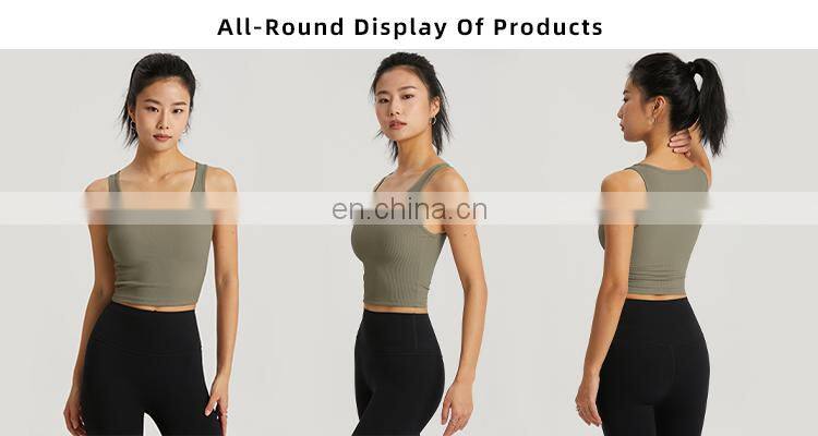 Ribbed Plus Size Yoga Sports Bra Fashionable Gym Clothing Womens Square Back Top
