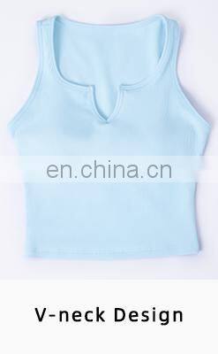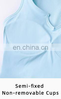 V Neck Semi Fixed Cups Ribbed Yoga Tank Tops High Support Oem Sports Bras For Gym Active Wear