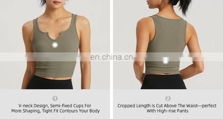 Home > Products > Ribber Yoga Wear > V Neck Semi Fixed Cups Ribbed Yoga Tank Tops High Support Oem Sports Bras For Gym Active Wear