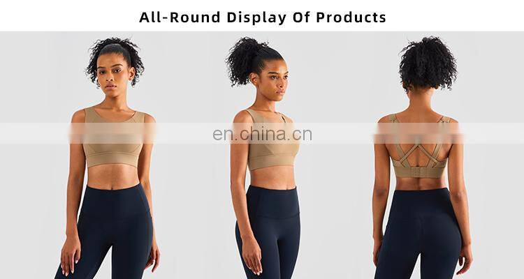 Side Folding Cross Beauty Back Women Gym Sports Bras Oem Wide Straps Yoga Fitness Tank Tops