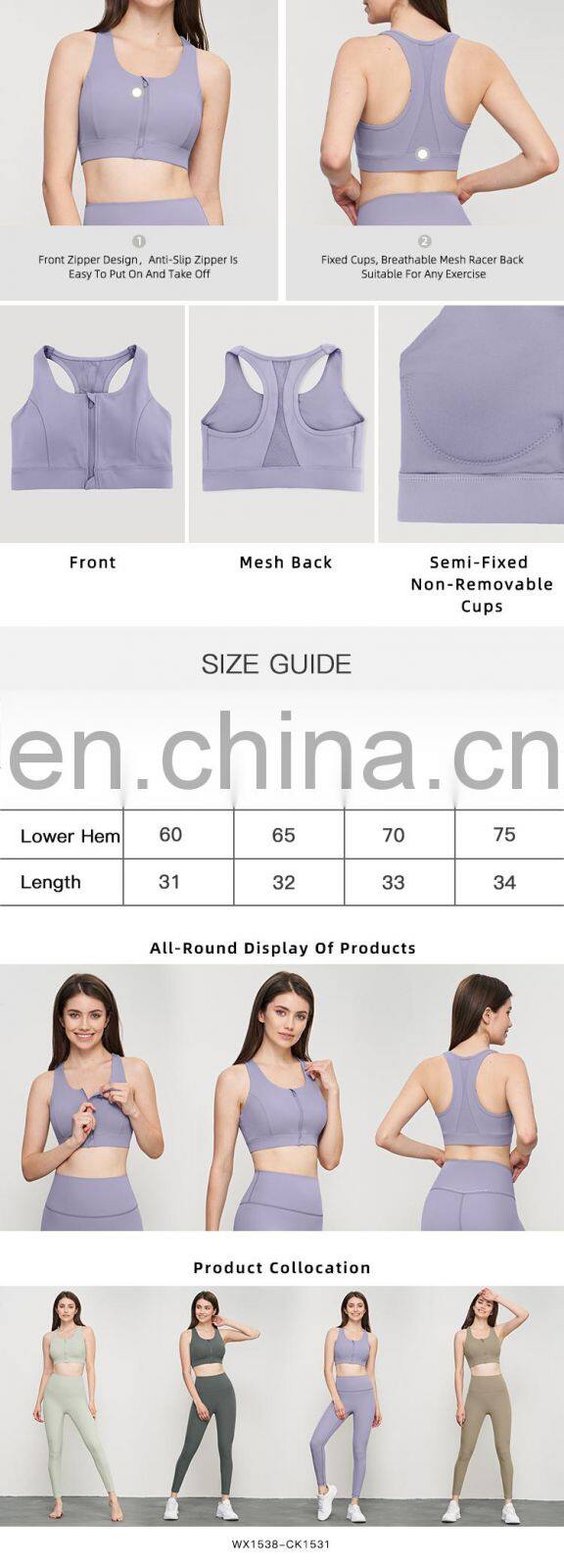 Product Name | Front Zipper Mesh Gym Racerback Sports Bras Custom Logo High Support Yoga Tank Tops | ||||||