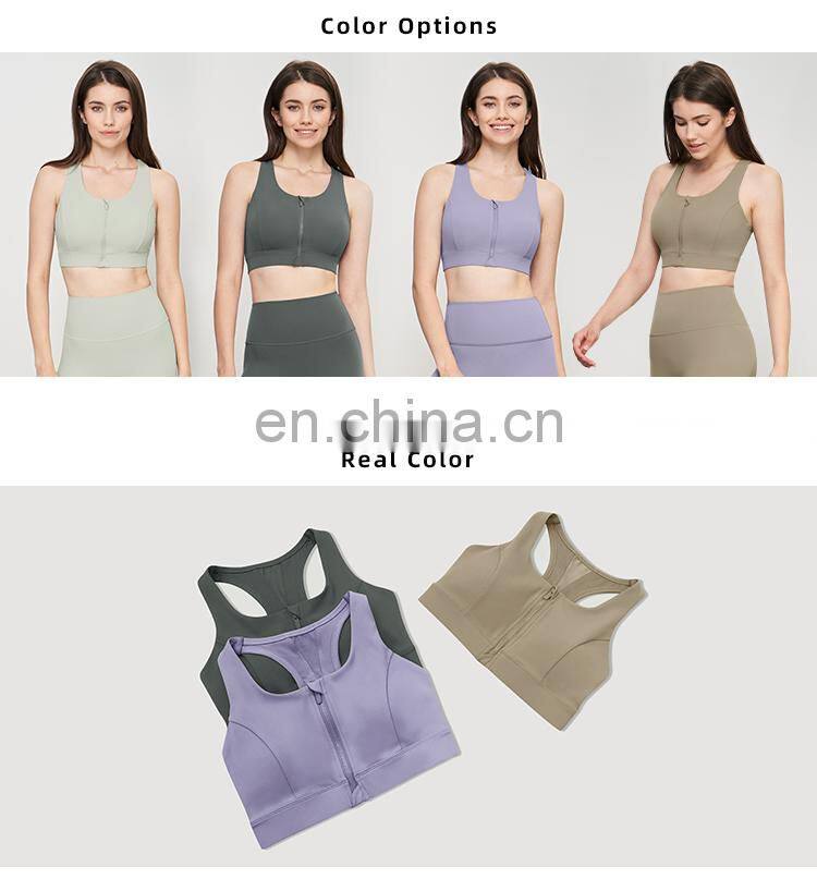 New Customized Front Zipper Shockproof Sports Bras Workout Fitness Yoga Tops