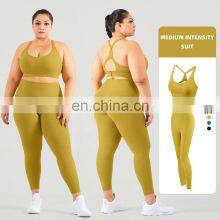 2 Piece Wholesale Gym Fitness Sets Shoulder Strap Sports Bra Wear Plus Size Suit
