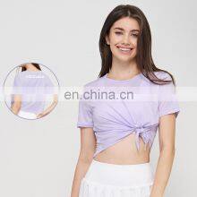 Cross Waist Sports Crop O Neck Short Sleeve Tennis Tops Wholesale Women Fixed Cups Gym Tank Bras