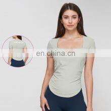 Square Collar Women Sport T-Shirts Wholesales Quick Dry U Hem Fitness Tops Summer Outdoor Yoga Wear