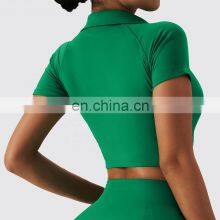 Polo Neck Breathable Crop Tank Tops Factory Sales Women Quick Dry Short Sleeve T Shirts