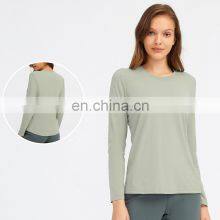 Soft Loose Long Sleeve Sports T Shirt Womens Custom Logo Yoga Causal Round Neck Tops