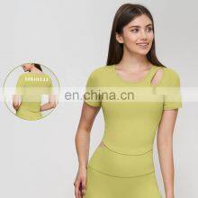 U Hem Plain Yoga Sportswear Custom Logo T Shirts Breathable Gym Fitness Tight Crop Tops